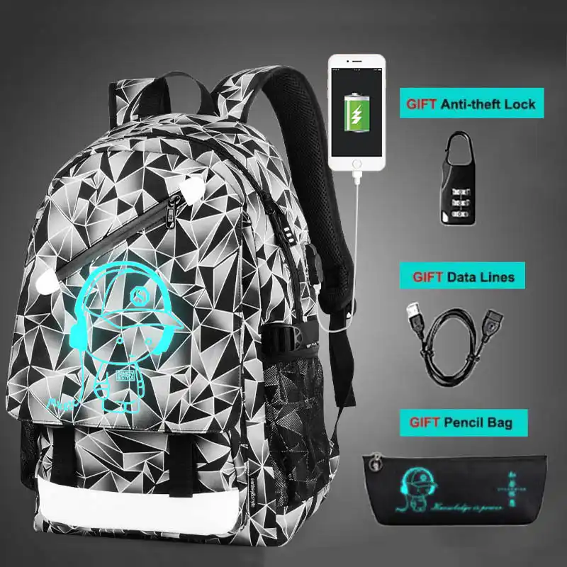 USB Chargeing Port Travel Laptop Bag anime luminous backpack