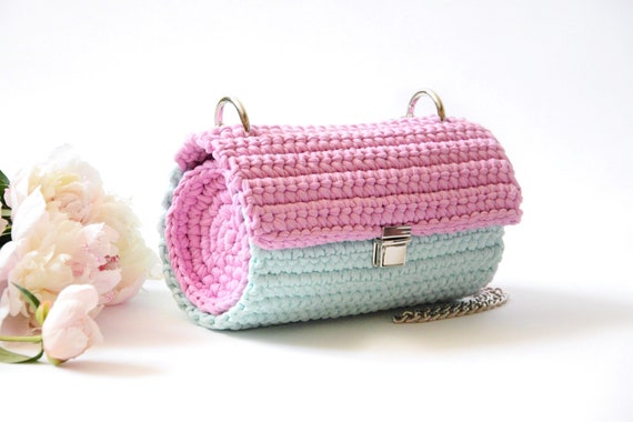 Pink blue crochet women clutch bag with pink and blue clutch bag