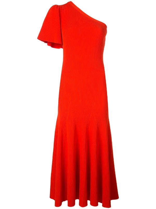 one-shoulder Flutter Sleeve Midi Dress carolina herrera red dress