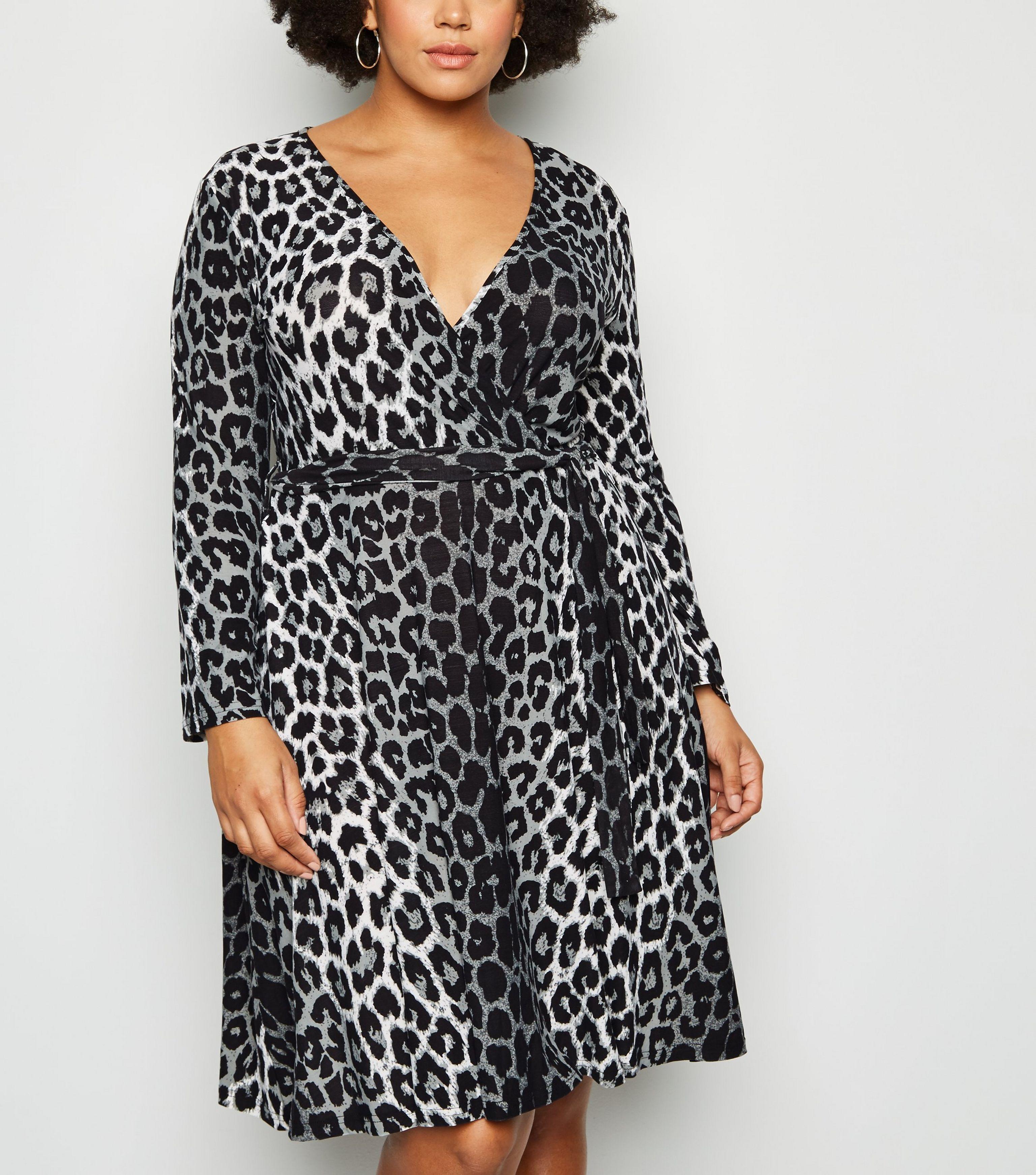 Light Grey Leopard Print Wrap Dress light grey wrap dress