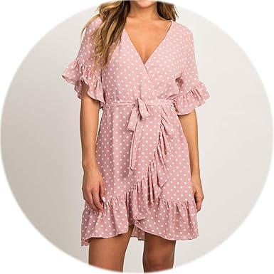 Summer Dress Sexy Deep V Neck Polka Dot pink summer dresses 2019