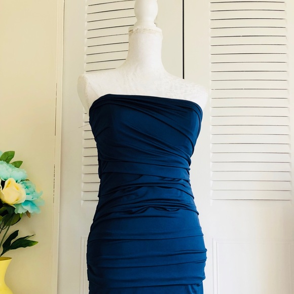 blue strapless bodycon dress