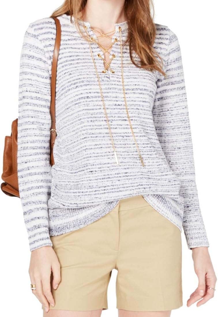 Sweater Small Knitted Lace-Up Striped michael kors sweaters womens yellow