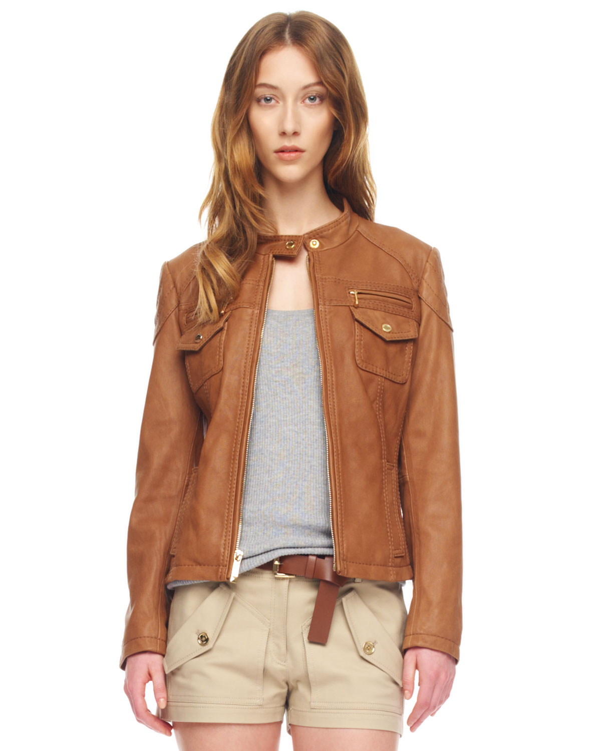 Michael Kors Leather Motorcycle Jacket michael kors brown jacket