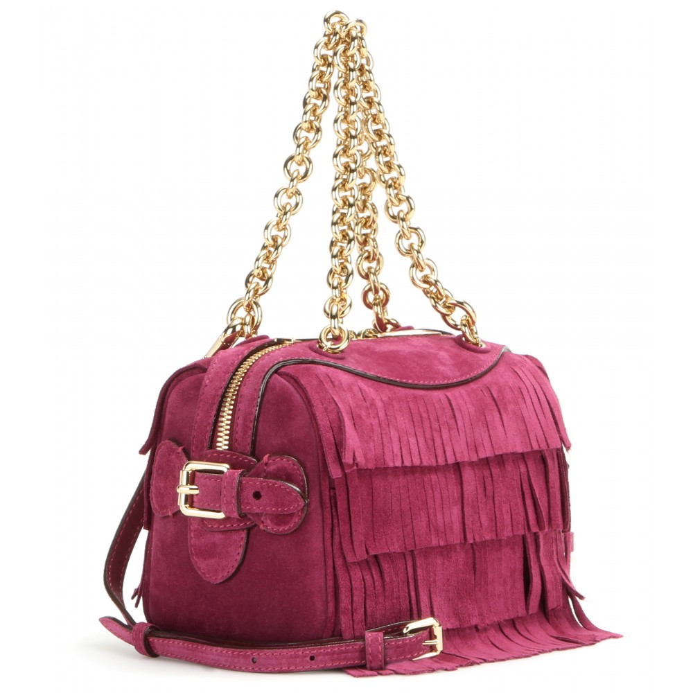 Fringed Suede Shoulder Bag in Purple burberry shoulder bag purple
