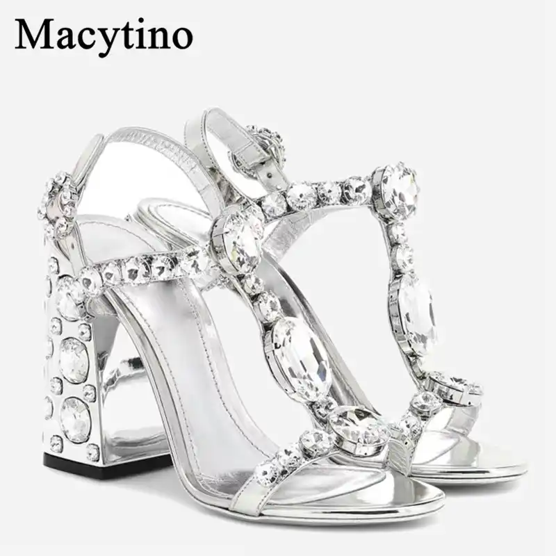High Heel Sandals Silver Mirror Leather plus size bridal shoes