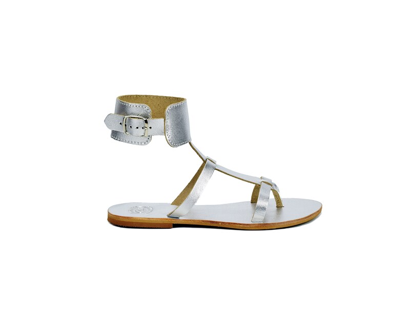 Sandals Ankle Cuff LEATHER Sandals Flat silver sandals flat