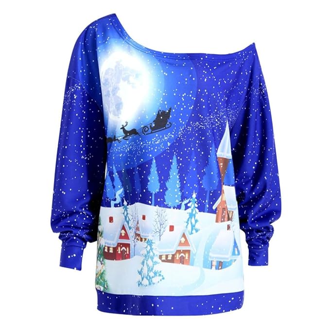 Donna Felpa di Natalizio Lungo,Maglie Natale Donna Renna Stampare maglie natalizie donna