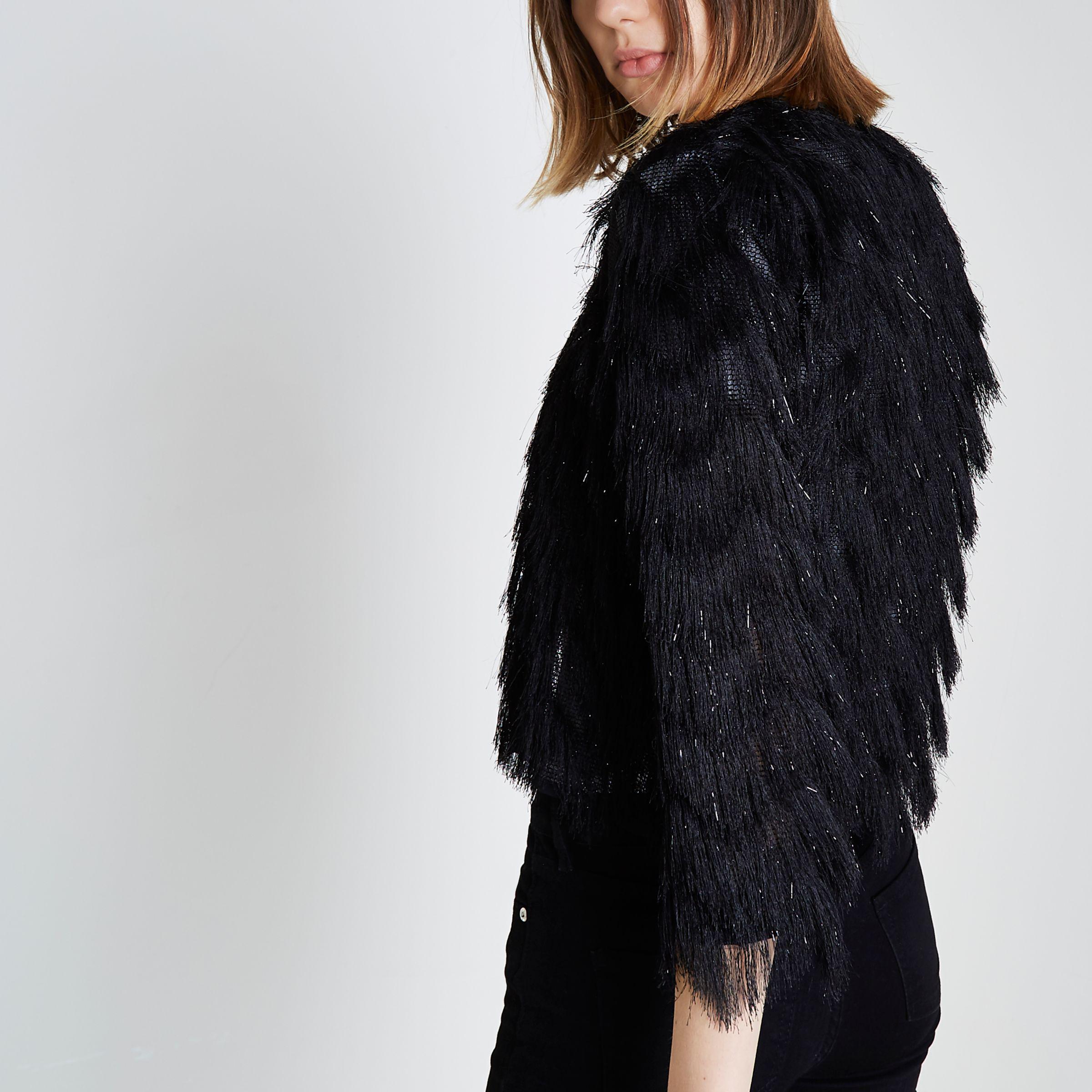 Fringe Short Jacket Black Lurex short fringe jacket
